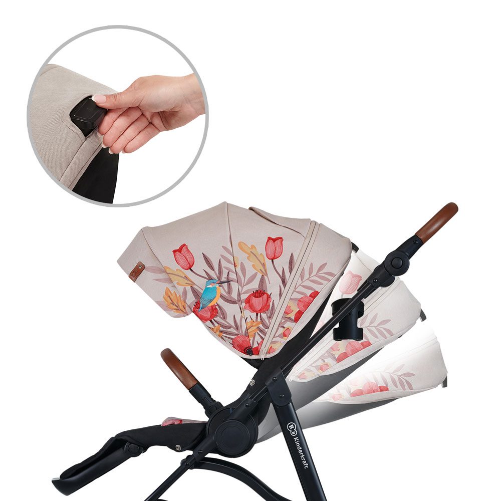 Kinderkraft All Road Bird kolica modernog su dizajna ukrašena prekrasnim cvjetnim uzorcima te detaljima ptičica. Savršen su spoj svega onoga što jedna praktična dječja kišobran kolica trebaju imati, a nude i puno više od toga. Položaj sjedala moguć u oba smjera vožnje, kotači od EVA pjene obloženi gumom, te sjenilo od vodonepropusne tkanine s UPF 50+ zaštitom od sunca samo su neki od detalja koji ova kolica čine pravom atrakcijom!