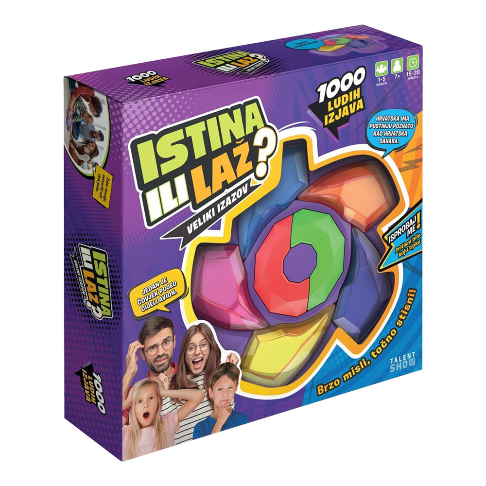 Društvena igra Istina ili laž Veliki izazov je izuzetno zabavna i dinamična elektronska društvena igra za cijelu obitelj! Zahtijeva samo dobru volju i spremnost na urnebesnu zabavu!